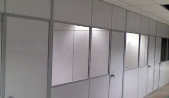 Divisórias Eucatex Divilux: Composto de painéis, portas, perfis e peças para fixação, possibilitam inúmeras combinações que se adaptam perfeitamente à necessidade de cada projeto. Além disso, permite vários tipos de modulação — em forma de X, L ou T, com passagem de fiação e colocação de painéis em várias situações. Os painéis e portas são fornecidos com o miolo MSO (“honey comb”), capaz de absorver impactos e distribuí-los nos vários pontos que formam as colmeias.